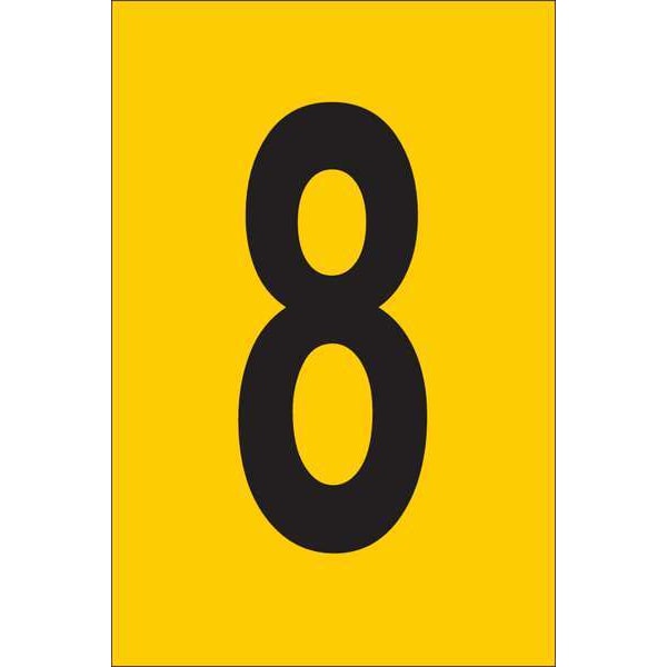 Number Label, Adhesive Type Permanent Adhesive, Application Utility Plant Markings, APWA Compliant Color No, Background Color Yellow, Character Color Black, Character Color Gradient Solid Color, Character Height 1 in, Character Outline Color Not Applicable, Character Type Numbers, Characters Included 8, Die Cut Yes, Embossed No, Font Gothic, Includes (25) Cards, Indoor/Outdoor Usage Indoor/Outdoor, Letter Casing Uppercase, Material Retroreflective Sheeting, Meets USCG Registration Guidelines No