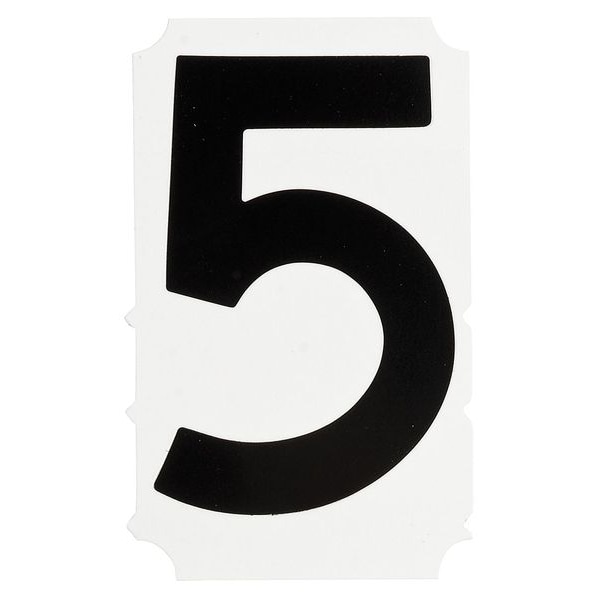 Number Label, Adhesive Type Permanent Adhesive, Application General Identification, APWA Compliant Color No, Background Color White, Character Color Black, Character Color Gradient Solid Color, Character Height 1 in, Character Outline Color Not Applicable, Character Type Numbers, Characters Included 5, Die Cut Yes, Embossed No, Font Gothic, Includes (10) Labels, Indoor/Outdoor Usage Indoor/Outdoor, Letter Casing Uppercase, Material Polyester, Meets USCG Registration Guidelines No