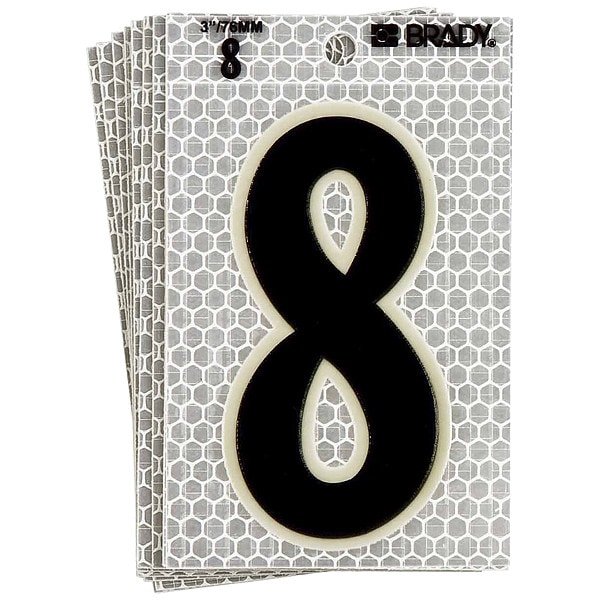 Number Label, Adhesive Type Permanent Adhesive, Application General Identification, APWA Compliant Color No, Background Color Silver, Character Color Black/Green, Character Color Gradient Solid Color, Character Height 5 in, Character Outline Color Not Applicable, Character Type Numbers, Characters Included 8, Die Cut Yes, Embossed No, Font Archivo Narrow, Includes (10) Labels, Indoor/Outdoor Usage Indoor/Outdoor, Letter Casing Uppercase, Material Retroreflective Sheeting