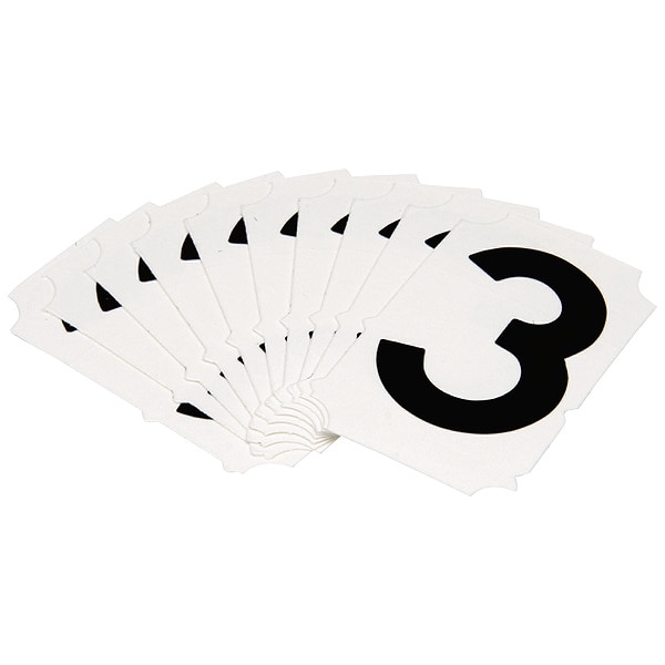 Number Label, Adhesive Type Permanent Adhesive, Application General Identification, APWA Compliant Color No, Background Color Not Applicable, Character Color Black, Character Color Gradient Solid Color, Character Height 2 in, Character Outline Color Not Applicable, Character Type Numbers, Characters Included 3, Die Cut Yes, Embossed No, Font Gothic, Includes (10) Labels, Indoor/Outdoor Usage Indoor/Outdoor, Letter Casing Uppercase, Material Polyester, Meets USCG Registration Guidelines No