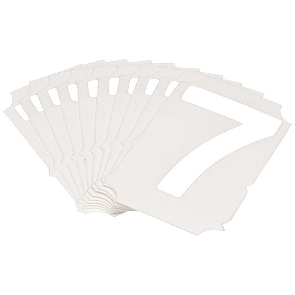 Number Label, Adhesive Type Permanent Adhesive, Application General Identification, APWA Compliant Color No, Background Color Not Applicable, Character Color White, Character Color Gradient Solid Color, Character Height 2 in, Character Outline Color Not Applicable, Character Type Numbers, Characters Included 7, Die Cut Yes, Embossed No, Font Gothic, Includes (10) Labels, Indoor/Outdoor Usage Indoor/Outdoor, Letter Casing Uppercase, Material Polyester, Meets USCG Registration Guidelines No