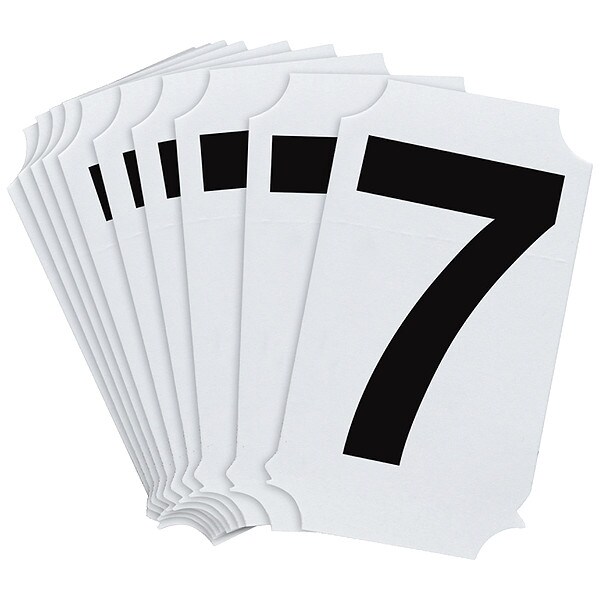 Number Label, Adhesive Type Permanent Adhesive, Application General Identification, APWA Compliant Color No, Background Color Not Applicable, Character Color Black, Character Color Gradient Solid Color, Character Height 2 in, Character Outline Color Not Applicable, Character Type Numbers, Characters Included 7, Die Cut Yes, Embossed No, Font Helvetica, Includes (10) Labels, Indoor/Outdoor Usage Indoor/Outdoor, Letter Casing Uppercase, Material Polyester, Meets USCG Registration Guidelines No