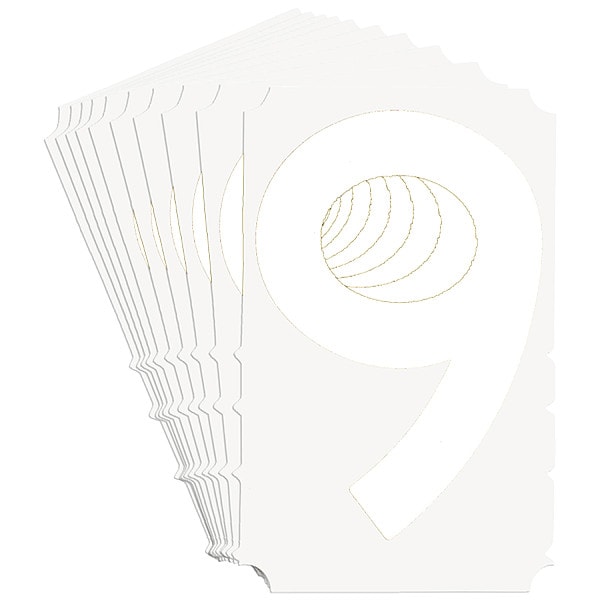 Number Label, Adhesive Type Permanent Adhesive, Application General Identification, APWA Compliant Color No, Background Color Not Applicable, Character Color White, Character Color Gradient Solid Color, Character Height 3 in, Character Outline Color Not Applicable, Character Type Numbers, Characters Included 6 or 9, Die Cut Yes, Embossed No, Font Gothic, Includes (10) Labels, Indoor/Outdoor Usage Indoor/Outdoor, Letter Casing Uppercase, Material Polyester, Meets USCG Registration Guidelines No