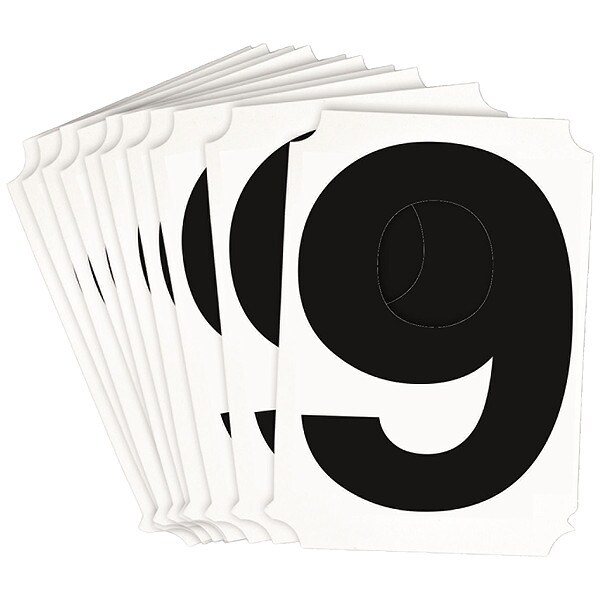 Number Label, Adhesive Type Permanent Adhesive, Application General Identification, APWA Compliant Color No, Background Color Not Applicable, Character Color Black, Character Color Gradient Solid Color, Character Height 3 in, Character Outline Color Not Applicable, Character Type Numbers, Characters Included 6 or 9, Die Cut Yes, Embossed No, Font Helvetica, Includes (10) Labels, Indoor/Outdoor Usage Indoor/Outdoor, Letter Casing Uppercase, Material Polyester
