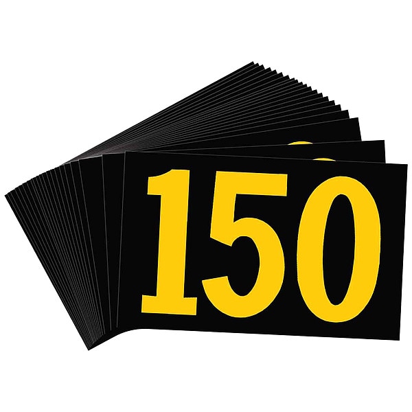 Number Label, Adhesive Type Permanent Adhesive, Application KVA Marking, APWA Compliant Color No, Background Color White, Character Color Black, Character Color Gradient Solid Color, Character Height 2 1/2 in, Character Outline Color Not Applicable, Character Type Numbers, Characters Included 150, Die Cut Yes, Embossed No, Font Gothic, Includes (25) Labels, Indoor/Outdoor Usage Indoor/Outdoor, Letter Casing Uppercase, Material Retroreflective Sheeting, Meets USCG Registration Guidelines No