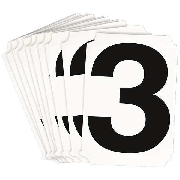 Number Label, Adhesive Type Permanent Adhesive, Application General Identification, APWA Compliant Color No, Background Color Not Applicable, Character Color Black, Character Color Gradient Solid Color, Character Height 4 in, Character Outline Color Not Applicable, Character Type Numbers, Characters Included 3, Die Cut Yes, Embossed No, Font Helvetica, Includes (10) Labels, Indoor/Outdoor Usage Indoor/Outdoor, Letter Casing Uppercase, Material Polyester, Meets USCG Registration Guidelines No