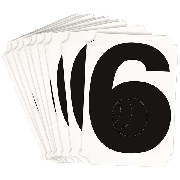 Number Label, Adhesive Type Permanent Adhesive, Application General Identification, APWA Compliant Color No, Background Color Not Applicable, Character Color Black, Character Color Gradient Solid Color, Character Height 4 in, Character Outline Color Not Applicable, Character Type Numbers, Characters Included 6 or 9, Die Cut Yes, Embossed No, Font Helvetica, Includes (10) Labels, Indoor/Outdoor Usage Indoor/Outdoor, Letter Casing Uppercase, Material Polyester