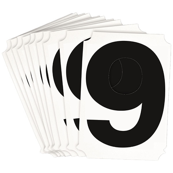 Number Label, Adhesive Type Permanent Adhesive, Application General Identification, APWA Compliant Color No, Background Color Not Applicable, Character Color Black, Character Color Gradient Solid Color, Character Height 4 in, Character Outline Color Not Applicable, Character Type Numbers, Characters Included 6 or 9, Die Cut Yes, Embossed No, Font Helvetica, Includes (10) Labels, Indoor/Outdoor Usage Indoor/Outdoor, Letter Casing Uppercase, Material Polyester