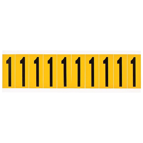Number Label, Adhesive Type Permanent Adhesive, Application General Identification, Pipe and Valve Marking, APWA Compliant Color No, Background Color Yellow, Character Color Black, Character Color Gradient Solid Color, Character Height 2 in, Character Outline Color Not Applicable, Character Type Numbers, Characters Included 1, Die Cut Yes, Embossed No, Font Archivo Narrow, Includes (10) Labels, Indoor/Outdoor Usage Indoor/Outdoor, Letter Casing Uppercase, Material Vinyl