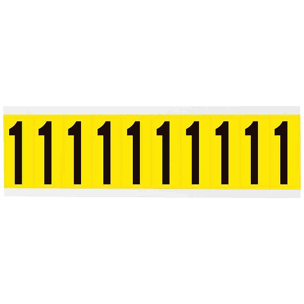 Number Label, Adhesive Type Removable and Repositionable Adhesive, Application General Identification, Wire and Cable Labeling, APWA Compliant Color No, Background Color Yellow, Character Color Black, Character Color Gradient Solid Color, Character Height 2 in, Character Outline Color Not Applicable, Character Type Numbers, Characters Included 1, Die Cut Yes, Embossed No, Font Gothic, Includes (10) Labels, Indoor/Outdoor Usage Indoor Only, Letter Casing Uppercase, Material Vinyl Cloth
