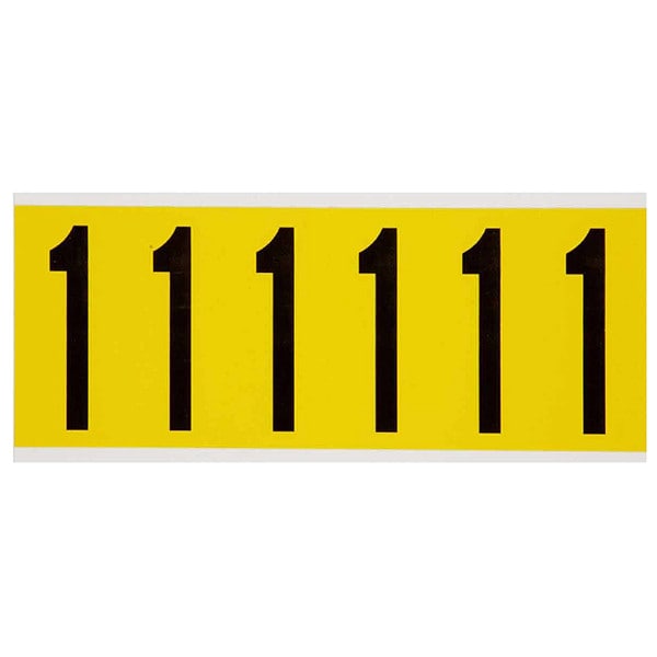 Number Label, Adhesive Type Removable and Repositionable Adhesive, Application General Identification, Wire and Cable Labeling, APWA Compliant Color No, Background Color Yellow, Character Color Black, Character Color Gradient Solid Color, Character Height 3 in, Character Outline Color Not Applicable, Character Type Numbers, Characters Included 1, Die Cut Yes, Embossed No, Font Gothic, Includes (6) Labels, Indoor/Outdoor Usage Indoor Only, Letter Casing Uppercase, Material Vinyl