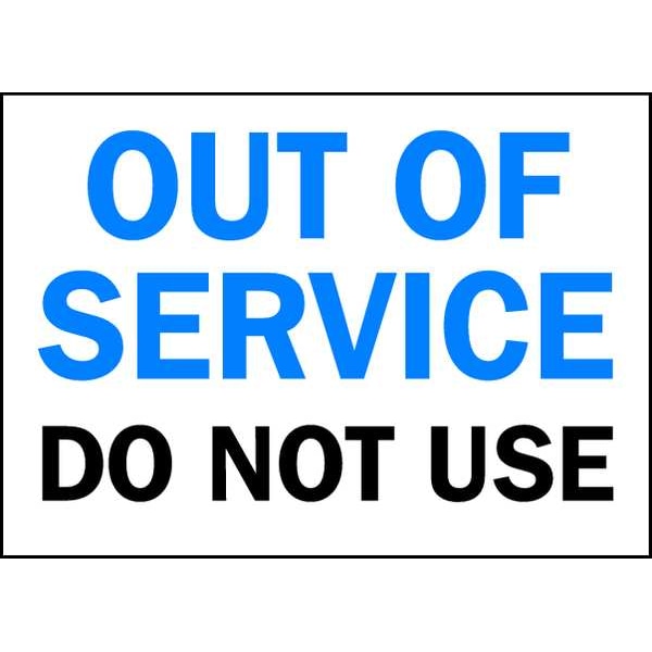 Information Sign, Sign Subject Matter Out of Service, Height 10 In., Width 14 In., Sign Material Polyester, Sign Mounting Style Adhesive Surface, Header No Header, Legend Out Of Service Do Not Use, Printed Language English, Sign Shape Rectangle