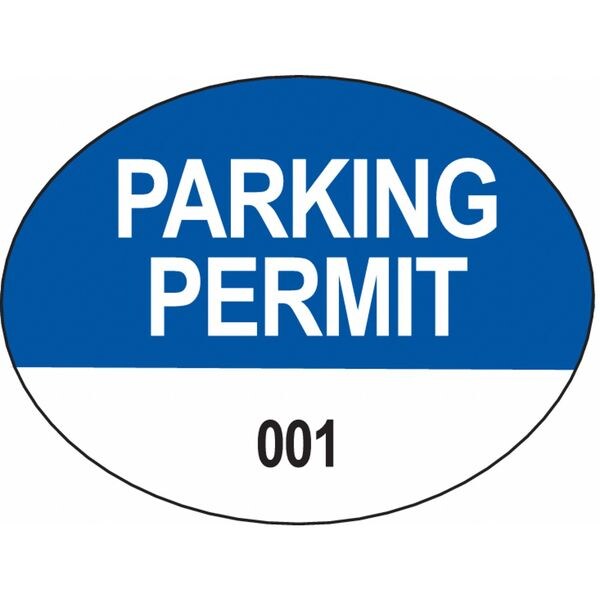 Parking Permits, Rearview Mirror Decal, Number Series 001-100, Material Vinyl, Color White on Blue, Length 2 in, Width 1 1/2 in, Expiration Time -, Legend Parking Permit, For Use With -, Includes -, Package Quantity 100