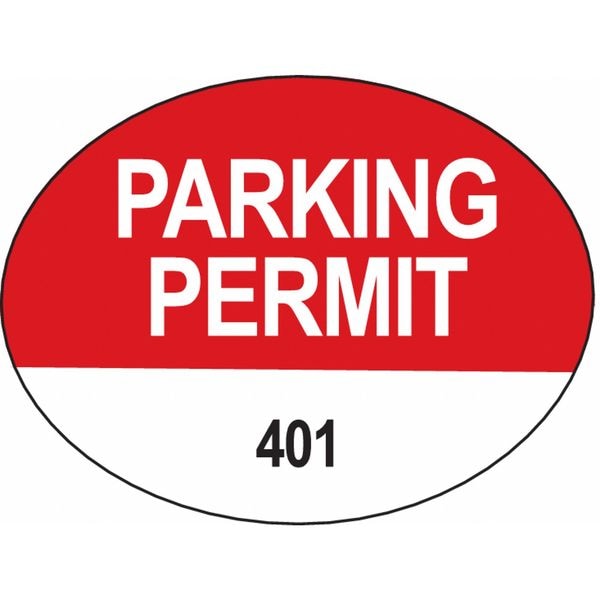 Parking Permits, Rearview Mirror Decal, Number Series 401-500, Material Vinyl, Color White on Red, Length 2 in, Width 1 1/2 in, Expiration Time -, Legend Parking Permit, For Use With -, Includes -, Package Quantity 100
