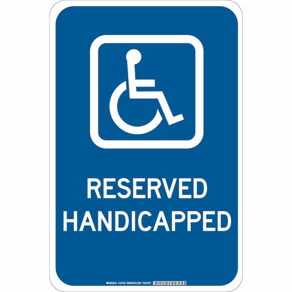 Handicap Parking Sign, Height 18 in, Width 12 in, Sign Material Polyester, Sign Mounting Style Adhesive Surface, Printed Language English, Sign Shape Rectangle