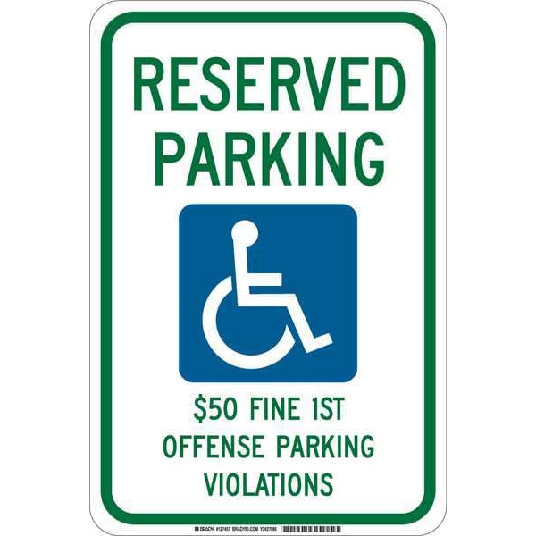 Handicap Parking Sign, Height 18 in, Width 12 In., Sign Material Polyester, Sign Mounting Style Adhesive Surface, Printed Language English, Sign Shape Rectangle