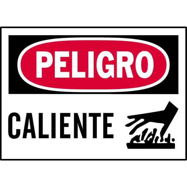 Equipment Label, Horizontal Rectangle, Number of Printed Sides 1, Spanish, Sign Legend Caliente, Sign Legend Style Text, Package Quantity 5