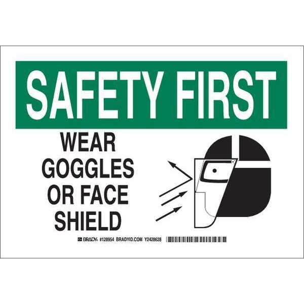 Personal Protection Sign, Sign Subject Matter Personal Protection, Height 7 in, Width 10 in, Sign Material Polyester, Sign Mounting Style Adhesive Surface, Header Safety First, Legend Wear Goggles Or Face Shield, Printed Language English, Sign Shape Rectangle
