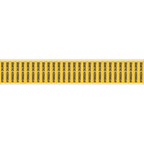 Pipe Marker, Pipe Marker Mounting Style Adhesive Pipe Marker, Pipe Marker Legend Hydrogen Chloride, Legend Text Color Black, Background Color Yellow, With or Without Arrows Without