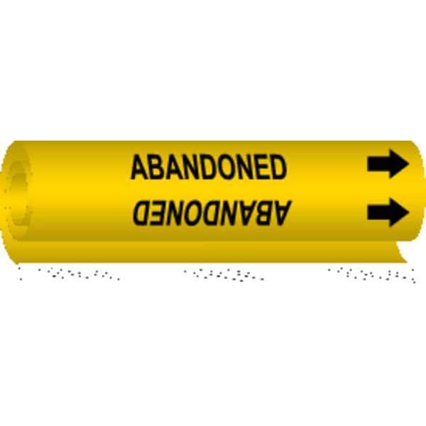 Pipe Marker, Pipe Marker Mounting Style Wrap-Around Pipe Marker, Pipe Marker Legend Abandoned, Legend Text Color Black, Character Height 1 1/4 in, Background Color Yellow, With or Without Arrows With