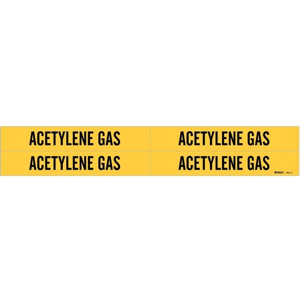 Pipe Marker, Pipe Marker Mounting Style Adhesive Pipe Marker, Pipe Marker Legend Acetylene Gas, Legend Text Color Black, Character Height 3/4 in, Background Color Yellow, With or Without Arrows Without