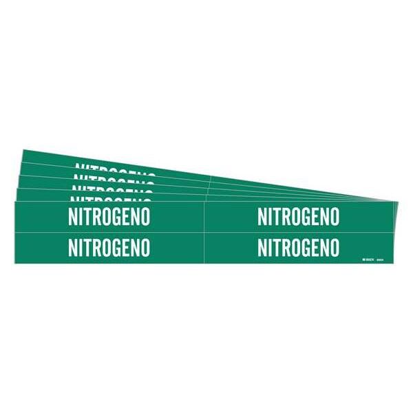 Pipe Marker, Pipe Marker Mounting Style Adhesive Pipe Marker, Pipe Marker Legend Nitrogeno, Legend Text Color White, Character Height 3/4 in, Background Color Green, With or Without Arrows Without, Package Quantity 5