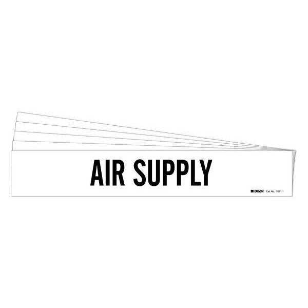 Pipe Marker, Pipe Marker Mounting Style Adhesive Pipe Marker, Pipe Marker Legend Air Supply, Legend Text Color Black, Character Height 2 in, Background Color White, With or Without Arrows Without, Package Quantity 5