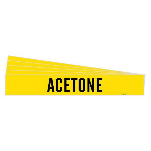 Pipe Marker, Pipe Marker Mounting Style Adhesive Pipe Marker, Pipe Marker Legend Acetone, Legend Text Color Black, IIAR System Abbreviation Not Applicable, IIAR Phase Not Applicable, IIAR Pressure Level Not Applicable, Character Height 3 1/2 in, Background Color Yellow, With or Without Arrows Without, Package Quantity 5