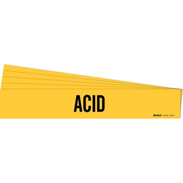 Pipe Marker, Pipe Marker Mounting Style Adhesive Pipe Marker, Pipe Marker Legend Acid, Legend Text Color Black, IIAR System Abbreviation Not Applicable, IIAR Phase Not Applicable, IIAR Pressure Level Not Applicable, Character Height 2 in, Background Color Yellow, With or Without Arrows Without, Package Quantity 5