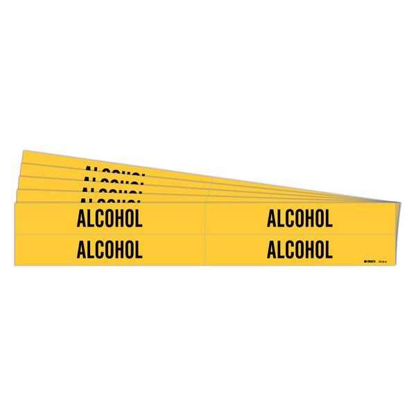 Pipe Marker, Pipe Marker Mounting Style Adhesive Pipe Marker, Pipe Marker Legend Alcohol, Legend Text Color Black, IIAR System Abbreviation Not Applicable, IIAR Phase Not Applicable, IIAR Pressure Level Not Applicable, Character Height 3/4 in, Background Color Yellow, With or Without Arrows Without, Package Quantity 5