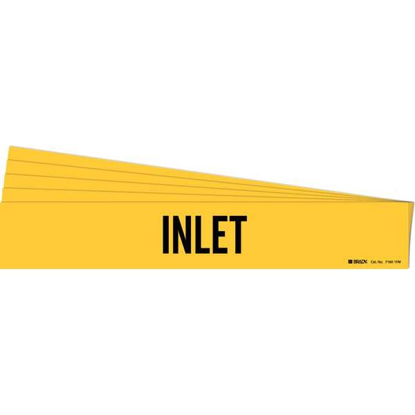 Pipe Marker, Pipe Marker Mounting Style Adhesive Pipe Marker, Pipe Marker Legend Inlet, Legend Text Color Black, IIAR System Abbreviation Not Applicable, IIAR Phase Not Applicable, IIAR Pressure Level Not Applicable, Character Height 3 1/2 in, Background Color Yellow, With or Without Arrows Without, Package Quantity 5