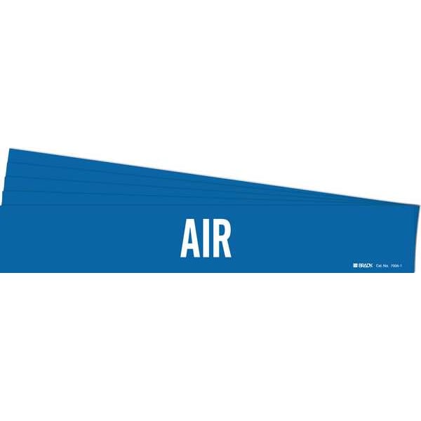 Pipe Marker, Pipe Marker Mounting Style Adhesive Pipe Marker, Pipe Marker Legend Air, Legend Text Color White, IIAR System Abbreviation Not Applicable, IIAR Phase Not Applicable, IIAR Pressure Level Not Applicable, Character Height 2 in, Background Color Blue, With or Without Arrows Without, Package Quantity 5