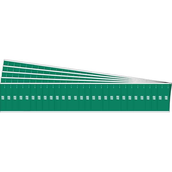 Pipe Marker, Pipe Marker Mounting Style Adhesive Pipe Marker, Pipe Marker Legend Air, Legend Text Color White, IIAR System Abbreviation Not Applicable, IIAR Phase Not Applicable, IIAR Pressure Level Not Applicable, Background Color Green, With or Without Arrows Without, Package Quantity 5