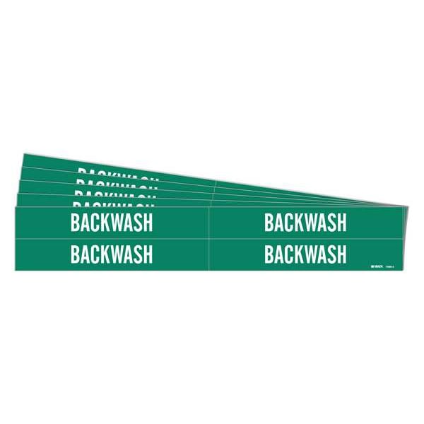 Pipe Marker, Pipe Marker Mounting Style Adhesive Pipe Marker, Pipe Marker Legend Backwash, Legend Text Color White, IIAR System Abbreviation Not Applicable, IIAR Phase Not Applicable, IIAR Pressure Level Not Applicable, Character Height 3/4 in, Background Color Green, With or Without Arrows Without, Package Quantity 5