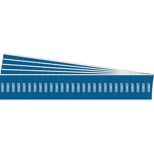 Pipe Marker, Pipe Marker Mounting Style Adhesive Pipe Marker, Pipe Marker Legend Exhaust, Legend Text Color White, IIAR System Abbreviation Not Applicable, IIAR Phase Not Applicable, IIAR Pressure Level Not Applicable, Background Color Blue, With or Without Arrows Without, Package Quantity 5