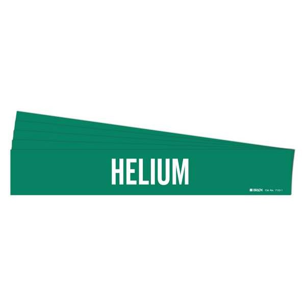 Pipe Marker, Pipe Marker Mounting Style Adhesive Pipe Marker, Pipe Marker Legend Helium, Legend Text Color White, IIAR System Abbreviation Not Applicable, IIAR Phase Not Applicable, IIAR Pressure Level Not Applicable, Character Height 2 in, Background Color Green, With or Without Arrows Without, Package Quantity 5