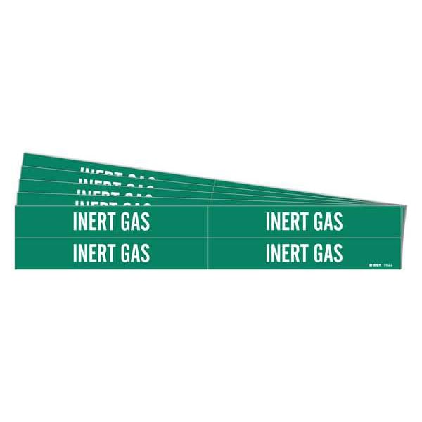 Pipe Marker, Pipe Marker Mounting Style Adhesive Pipe Marker, Pipe Marker Legend Inert Gas, Legend Text Color White, IIAR System Abbreviation Not Applicable, IIAR Phase Not Applicable, IIAR Pressure Level Not Applicable, Character Height 3/4 in, Background Color Green, With or Without Arrows Without, Package Quantity 5