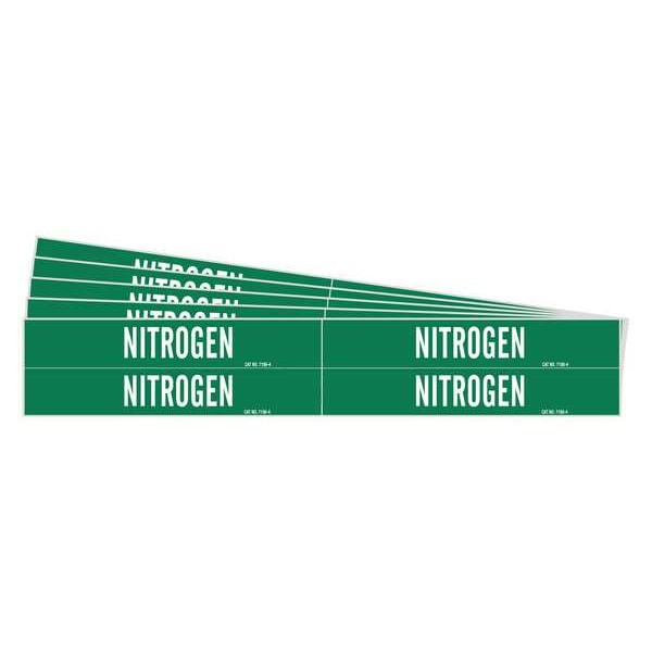 Pipe Marker, Pipe Marker Mounting Style Adhesive Pipe Marker, Pipe Marker Legend Nitrogen, Legend Text Color White, IIAR System Abbreviation Not Applicable, IIAR Phase Not Applicable, IIAR Pressure Level Not Applicable, Character Height 3/4 in, Background Color Green, With or Without Arrows Without, Package Quantity 5