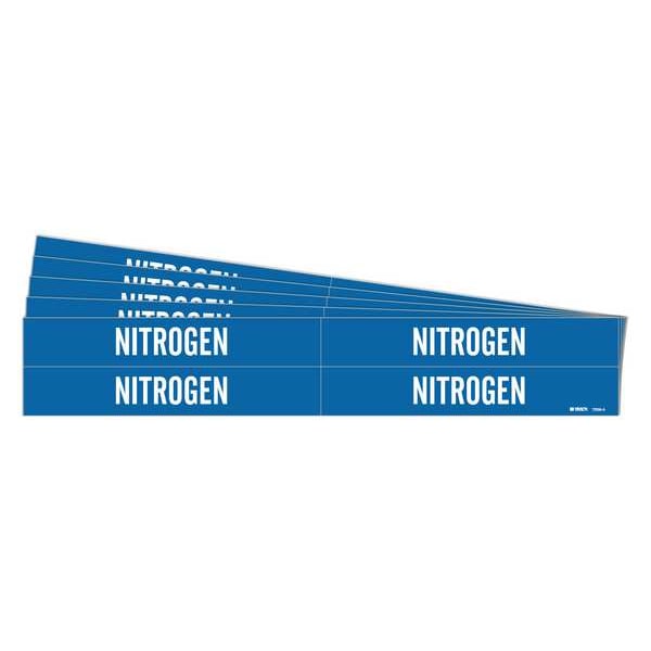 Pipe Marker, Pipe Marker Mounting Style Adhesive Pipe Marker, Pipe Marker Legend Nitrogen, Legend Text Color White, IIAR System Abbreviation Not Applicable, IIAR Phase Not Applicable, IIAR Pressure Level Not Applicable, Character Height 3/4 in, Background Color Blue, With or Without Arrows Without, Package Quantity 5