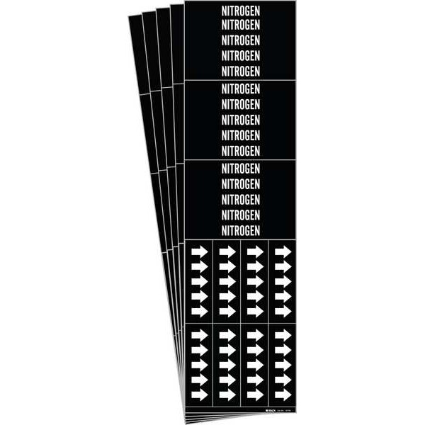Pipe Marker, Pipe Marker Mounting Style Adhesive Pipe Marker, Pipe Marker Legend Nitrogen, Legend Text Color White, IIAR System Abbreviation Not Applicable, IIAR Phase Not Applicable, IIAR Pressure Level Not Applicable, Character Height 1/2 in, Background Color Black, With or Without Arrows With, Package Quantity 5
