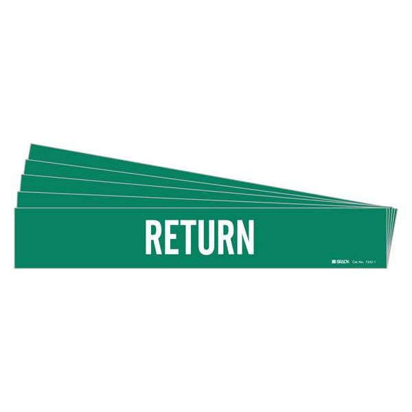 Pipe Marker, Pipe Marker Mounting Style Adhesive Pipe Marker, Pipe Marker Legend Return, Legend Text Color White, Character Height 2 in, Background Color Green, With or Without Arrows Without, Package Quantity 5