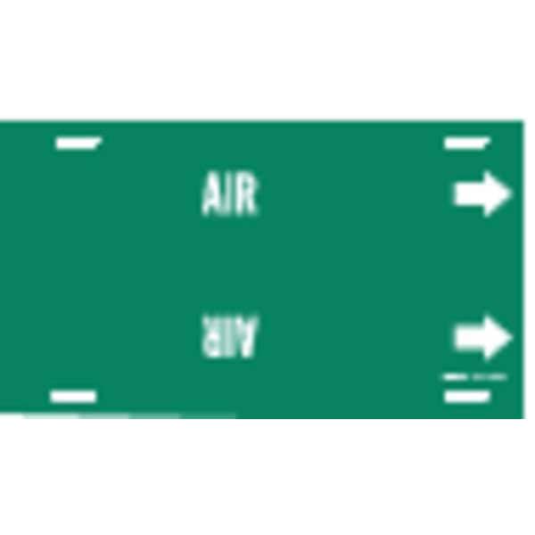 Pipe Marker, Pipe Marker Mounting Style Strap-On Pipe Marker, Pipe Marker Legend Air, Legend Text Color White, Character Height 2 1/2 in, Background Color Green, With or Without Arrows With