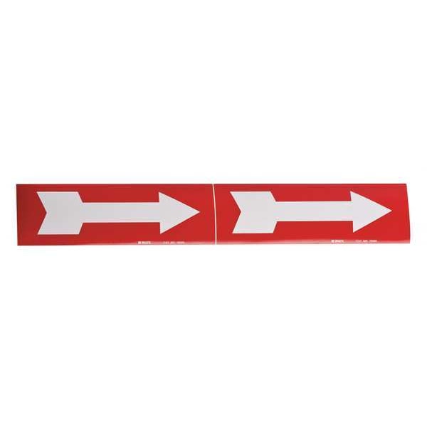 Pipe Marker, Pipe Marker Legend (Arrow), Legend Text Color White, Background Color Red, Pipe Marker Mounting Style Adhesive Pipe Marker, Self-Adhesive Pipe Marker Format Die-Cut on Cards, Length 2 1/4 in, Width 7 in, Thickness 0.004 in, Roll Length Not Applicable