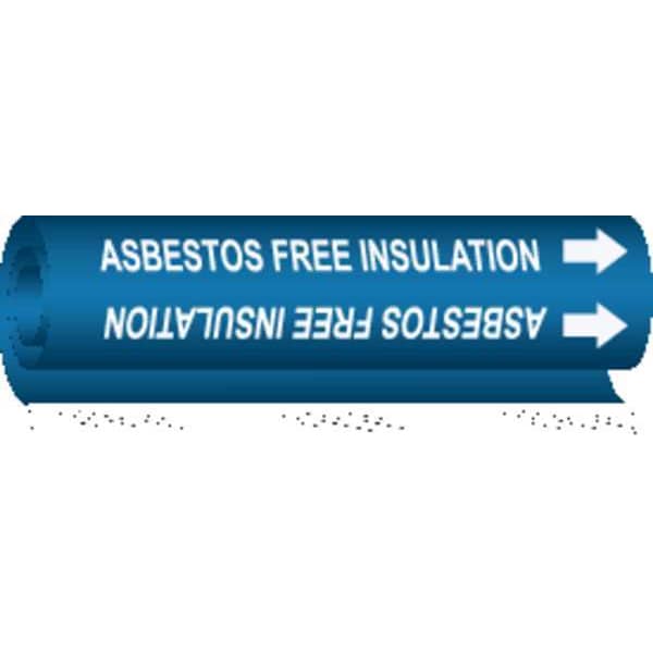 Pipe Marker, Pipe Marker Mounting Style Wrap-Around Pipe Marker, Pipe Marker Legend Asbestos Free Insulation, Legend Text Color White, Character Height 1 1/4 in, Background Color Blue, With or Without Arrows With