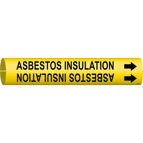Pipe Marker, Pipe Marker Mounting Style Snap-On Pipe Marker, Pipe Marker Legend Asbestos Insulation, Legend Text Color Black, Character Height 3/4 in, Background Color Yellow, With or Without Arrows With