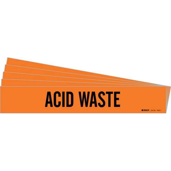 Pipe Marker, Pipe Marker Mounting Style Adhesive Pipe Marker, Pipe Marker Legend Acid Waste, Legend Text Color Black, IIAR System Abbreviation Not Applicable, IIAR Phase Not Applicable, IIAR Pressure Level Not Applicable, Character Height 2 in, Background Color Orange, With or Without Arrows Without, Package Quantity 5