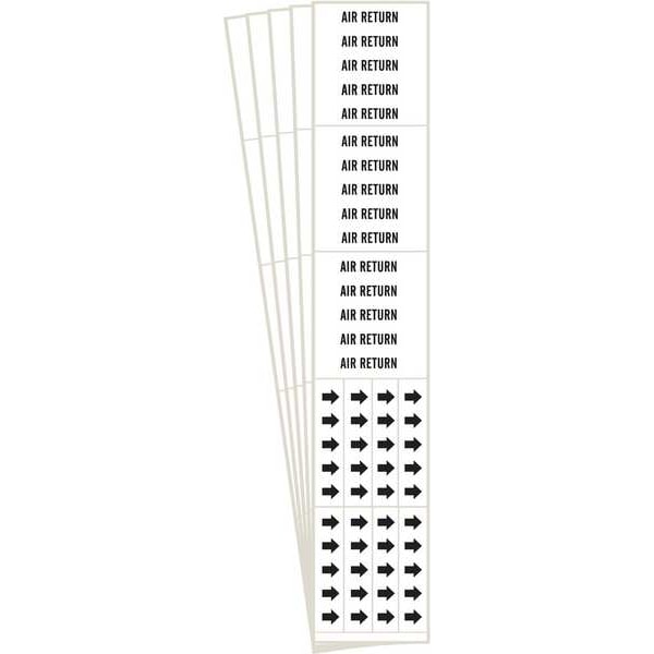 Pipe Marker, Pipe Marker Mounting Style Adhesive Pipe Marker, Pipe Marker Legend Air Return, Legend Text Color Black, IIAR System Abbreviation Not Applicable, IIAR Phase Not Applicable, IIAR Pressure Level Not Applicable, Character Height 1/2 in, Background Color White, With or Without Arrows With, Package Quantity 5