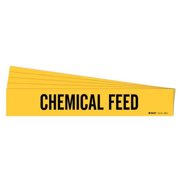 Pipe Marker, Pipe Marker Mounting Style Adhesive Pipe Marker, Pipe Marker Legend Chemical Feed, Legend Text Color Black, IIAR System Abbreviation Not Applicable, IIAR Phase Not Applicable, IIAR Pressure Level Not Applicable, Character Height 2 in, Background Color Yellow, With or Without Arrows Without, Package Quantity 5