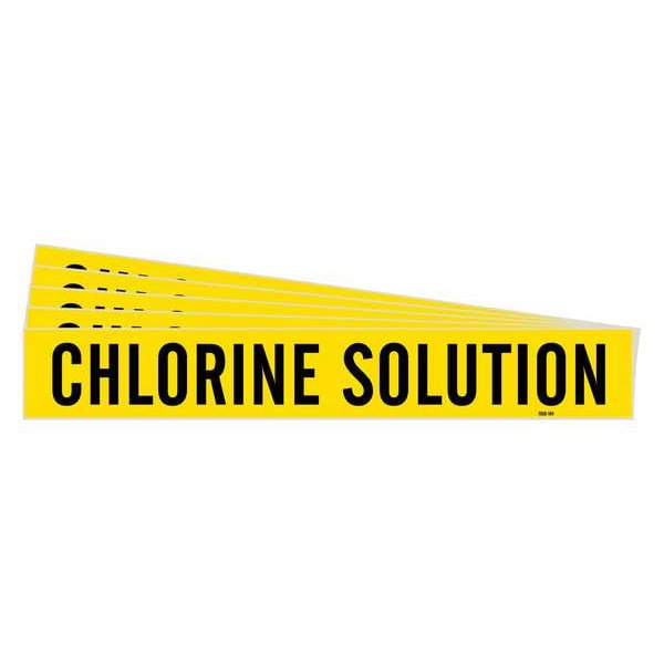 Pipe Marker, Pipe Marker Mounting Style Adhesive Pipe Marker, Pipe Marker Legend Chlorine Solution, Legend Text Color Black, IIAR System Abbreviation Not Applicable, IIAR Phase Not Applicable, IIAR Pressure Level Not Applicable, Character Height 3 1/2 in, Background Color Yellow, With or Without Arrows Without, Package Quantity 5
