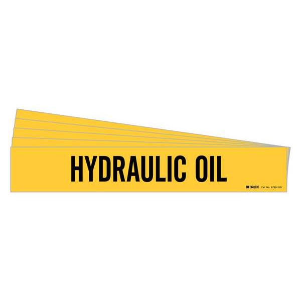 Pipe Marker, Pipe Marker Mounting Style Adhesive Pipe Marker, Pipe Marker Legend Hydraulic Oil, Legend Text Color Black, IIAR System Abbreviation Not Applicable, IIAR Phase Not Applicable, IIAR Pressure Level Not Applicable, Character Height 3 1/2 in, Background Color Yellow, With or Without Arrows Without, Package Quantity 5